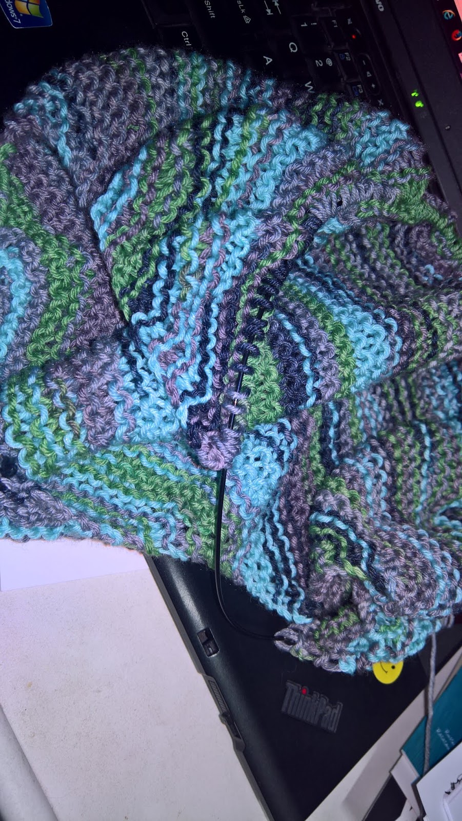It's not laying out quite like I'd like the colors to lay out. But it's mostly shades I wear (minus the green; I don't wear a lot of green, so I'm still not sure why I purchased this colorway...). I figure that it's got enough grey and black in it to go with the many things I wear that are -- grey. Or black.